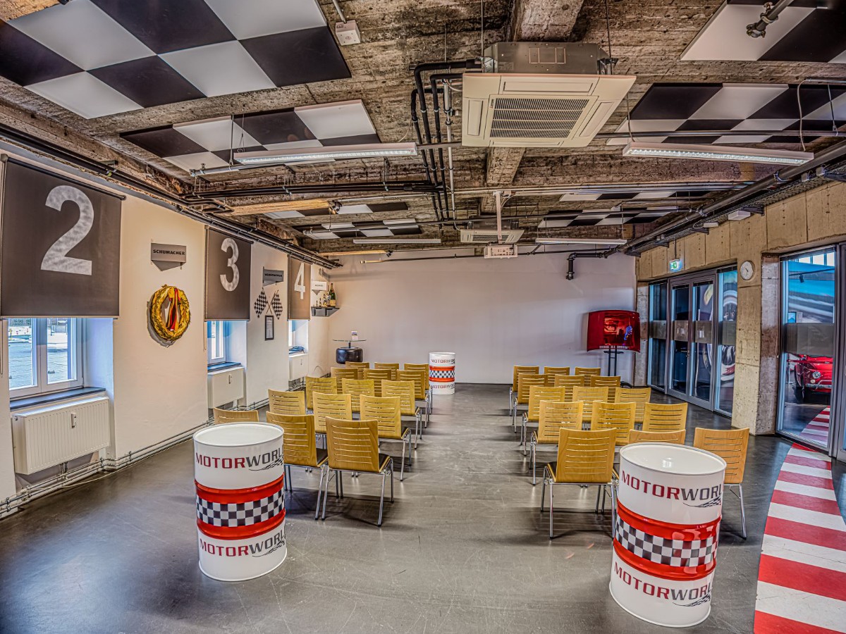 Die Motorworld Köln bietet je nach Fläche und Veranstaltungsformat vielseitige Möglichkeiten für professionelle Events. Dazu gehören variable Eventflächen, moderne Tagungsräume, flexible Bestuhlungsoptionen und die passende Infrastruktur für Tagungen, Firmenevents, Produktpräsentationen und Abendveranstaltungen. Je nach Anlass lassen sich außerdem Technik, Catering, Dekoration und weitere Ausstattungsbausteine individuell ergänzen, damit das Event genau zu Deinem Format und Deinen Zielen passt.