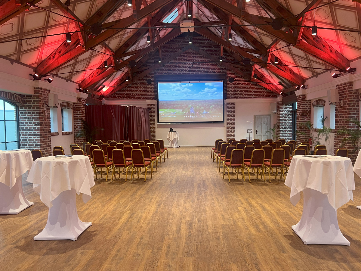 Werâs gröĂer plant, findet in der 400 mÂČ groĂen Eventscheune eine moderne Lösung fĂŒr Firmenfeiern, Konferenzen oder Hausmessen.