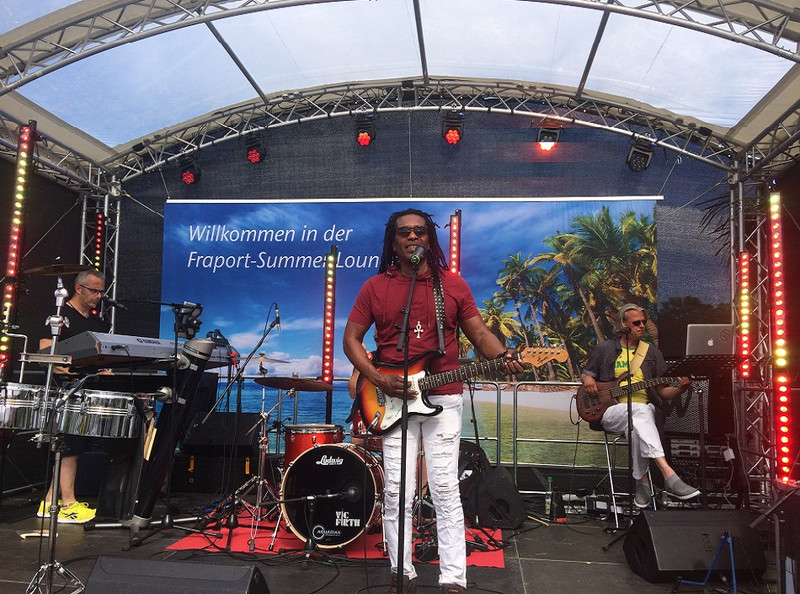 Die zweite von der Eventmanagerin vermittelte Band, Kaskadu betrat um 15 Uhr die Bühne. Das hier international erfahrene Profimusiker am Werk sind, wurde sehr schnell deutlich. Perfekt gespielte karibische Rhythmen, ein buntes Feuerwerk aus Reggae, Soul, Soca Calypso und lateinamerikanischen Klänge hüllten die Zuschauer ein und versprühten eine Lebensfreude, der sich niemand entziehen konnte. Während die einen mit Cocktails in der Hand dem karibischen Lebensgefühl nachhingen, ließen sich zahlreiche Besucher von dem Enthusiasmus und der Musik mitreißen und verwandelten den Bühnenvorplatz kurzum in eine Tanzfläche. Rund drei Stunden sorgte Kaskadu für perfekte, sommerliche Unterhaltung unter freiem Himmel. „Man spürt die Leidenschaft dieser Musiker bei jedem Anschlag“, sagt Kamrad. „Da kann man sich einfach nicht entziehen.“